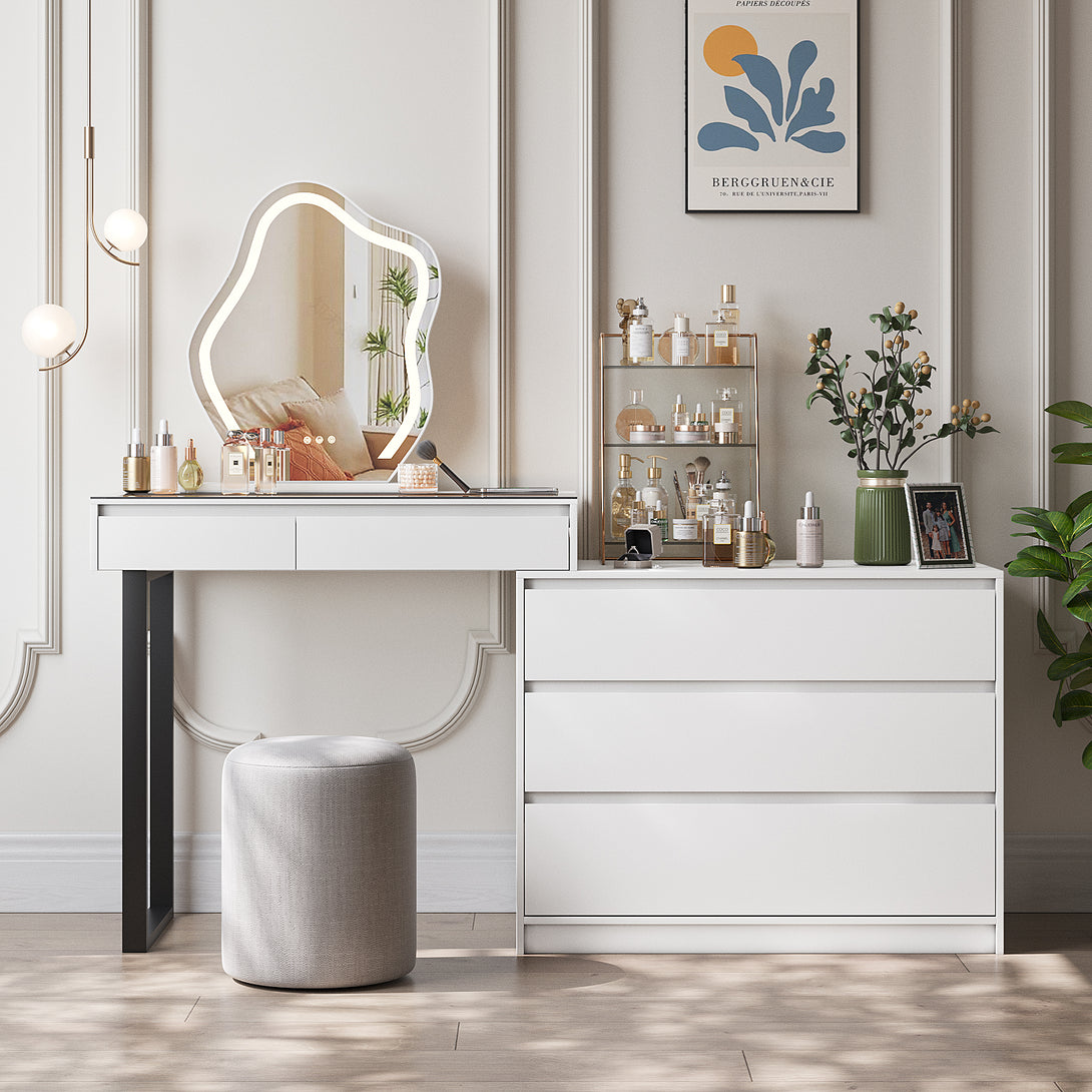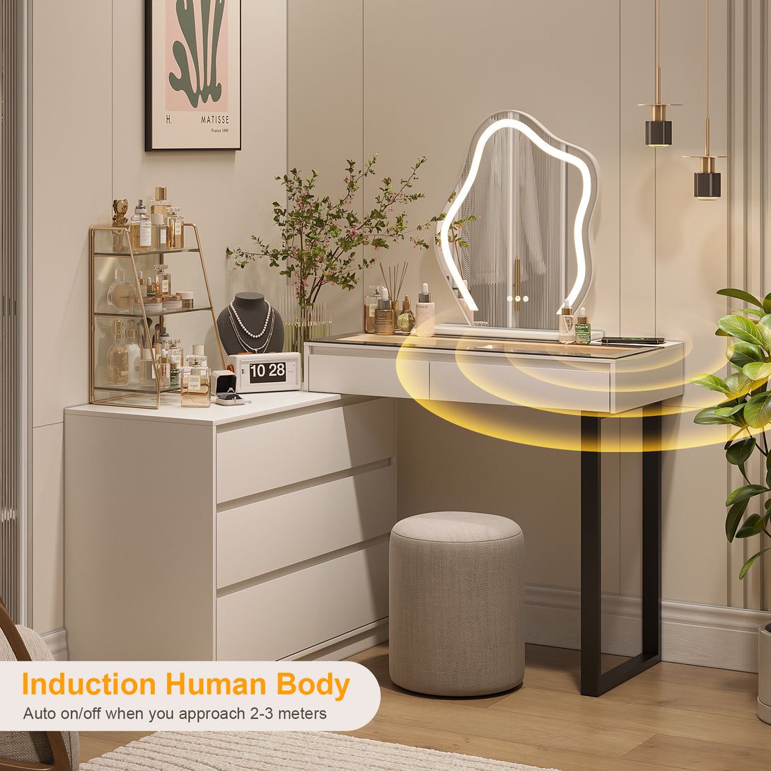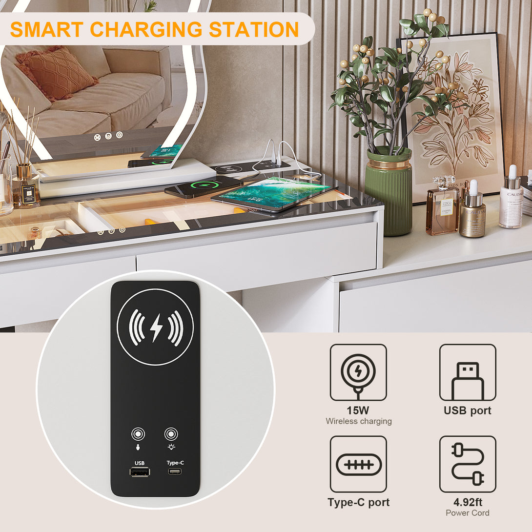 - 【Convenient Wireless Charging】This modern makeup vanity with 15W fast wireless charging, 1x USB, 1x Type-C port, meet the charging needs of different devices such as mobile phones and tablets, making it easier to take selfies or live broadcasts.